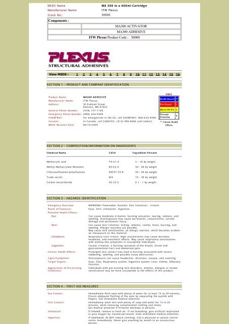 Msds Plexus Ma300 Adhesive Jamestown Distributors